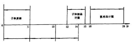 氣球法采樣系統(tǒng)示于圖4,其工作原理同雙濾膜法,只不過氣球代替了衰變筒。把氣球法測氡和馬爾柯夫法測潛能聯(lián)合起來,一次操作用26min,即可得到氡及其子體α潛能濃度。其時間程序示于圖5。